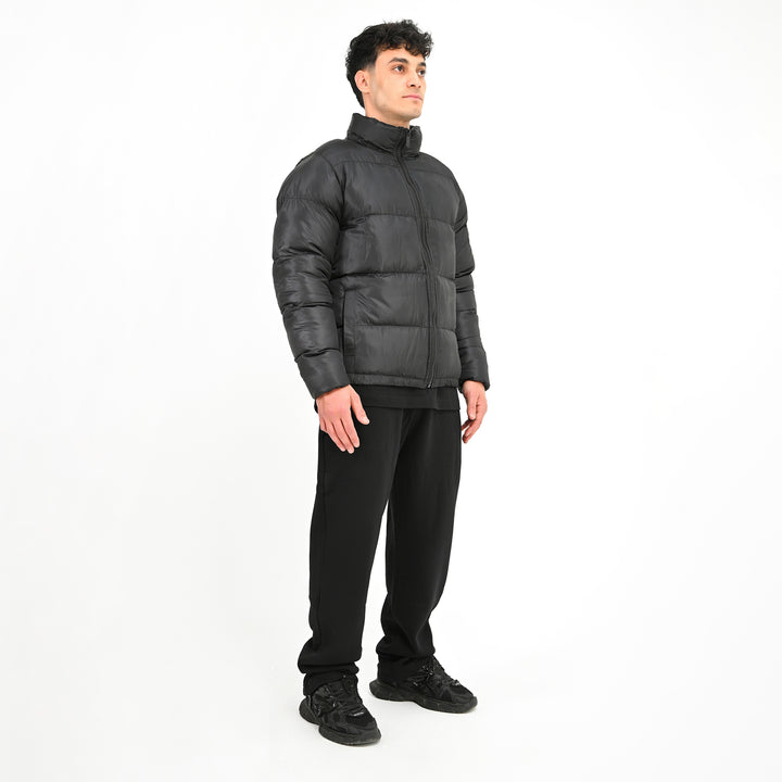 Padded jacket with High neck and long sleeves finished with elasticated inner cuffs. Welt pockets on the hips.